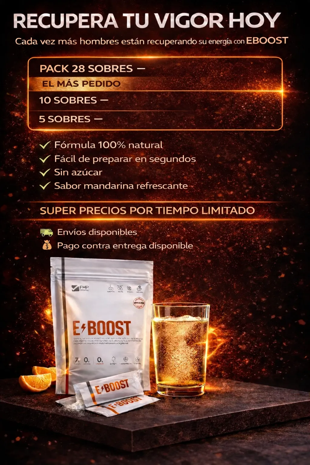 Porque E-BOOST no es un químico de efecto momentáneo, sino una fórmula completa que recupera tu energía, deseo y rendimiento desde dentro. Mientras otros productos sólo estimulan temporalmente, E-BOOST fortalece tu cuerpo, mejora tu circulación y potencia tu confianza día tras día.